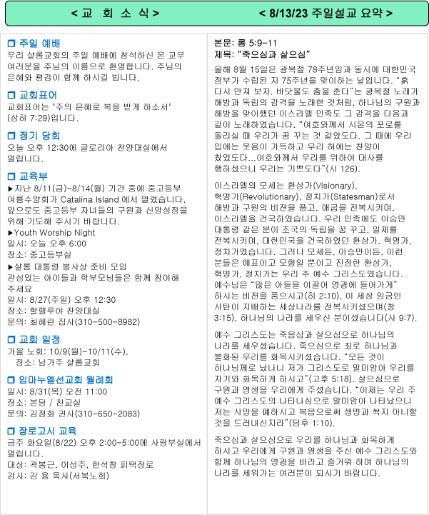 주일 설교 요약