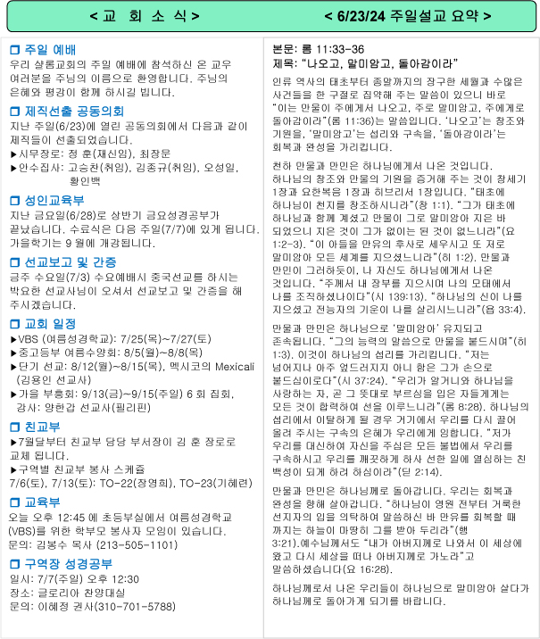 주일 설교 요약