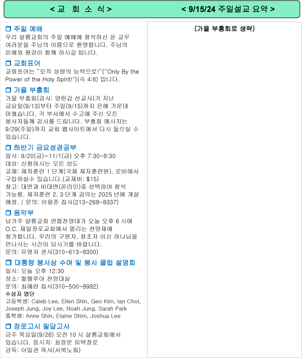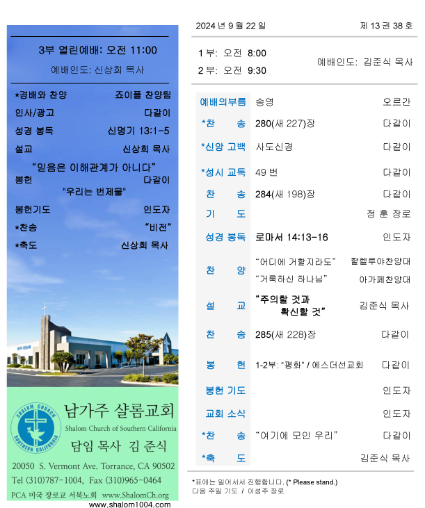 남가주샬롬교회 내규